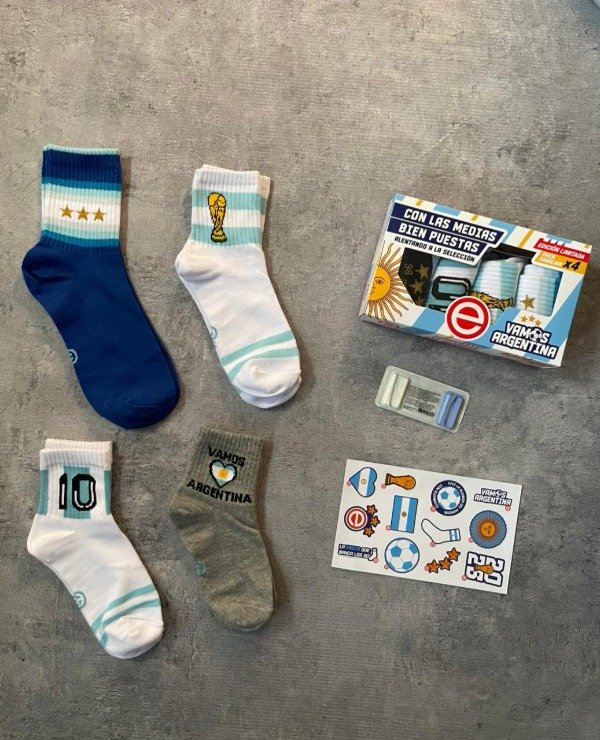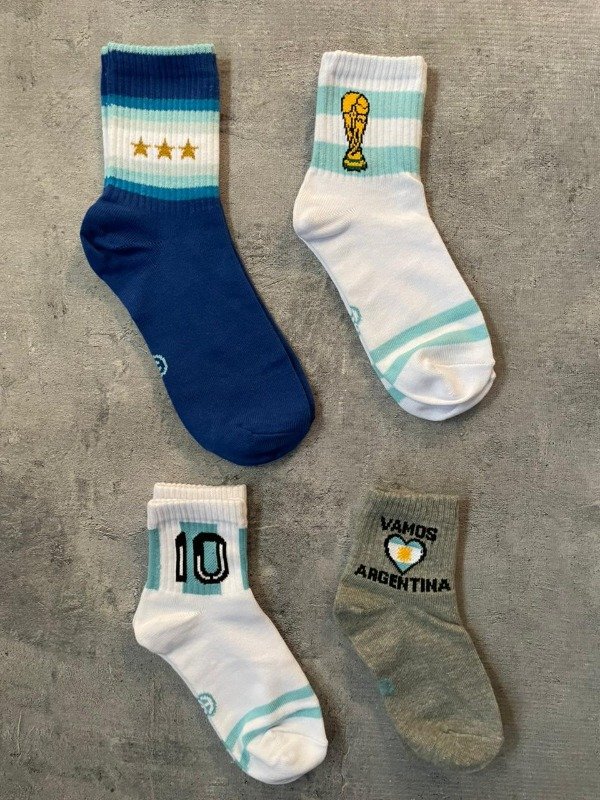 Pack x4 familiar de medias tennis para alentar a la seleccion